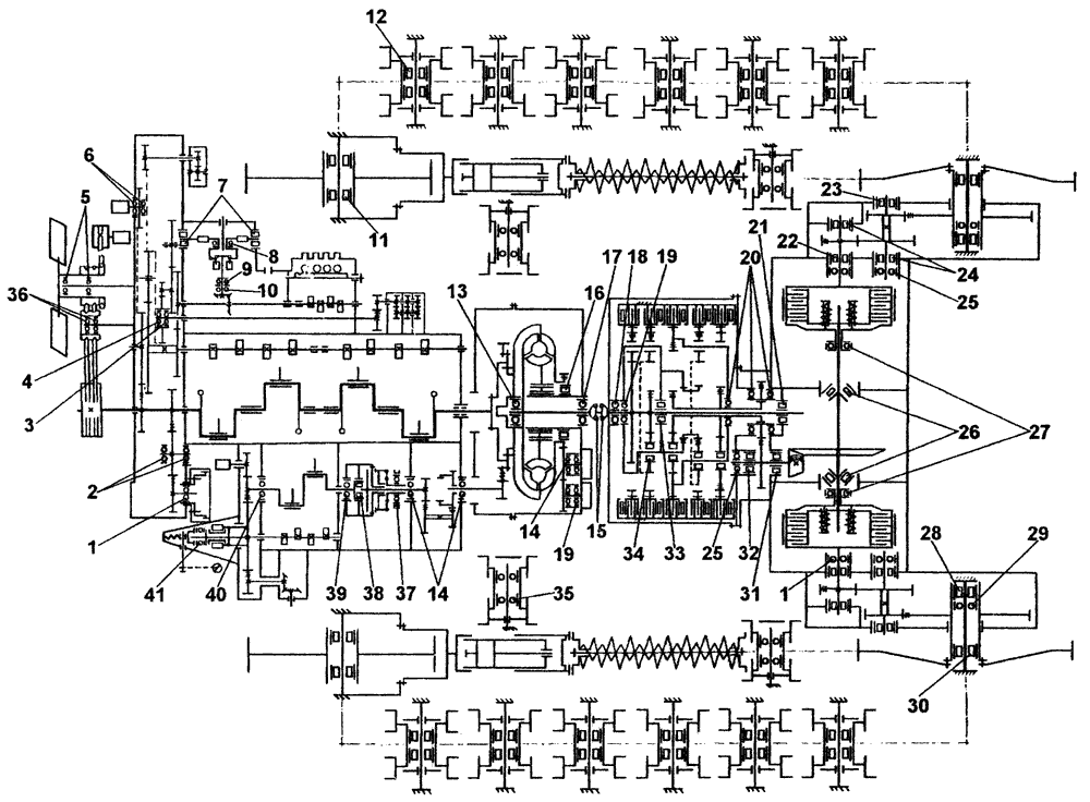 Схема расположения подшипников на тракторе с гидромеханической трансмиссией на Т10М / Б10М