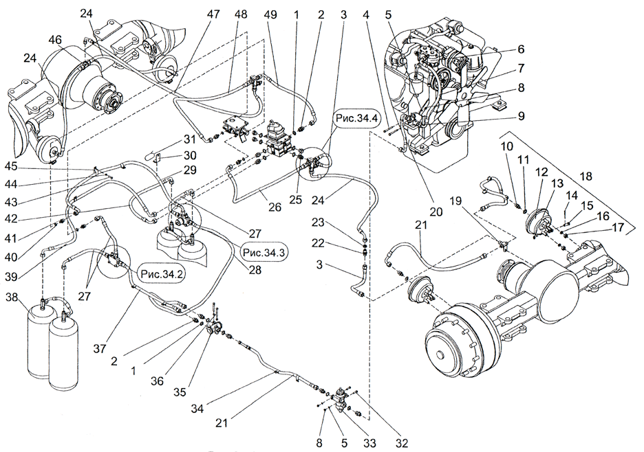 Рис. 34.3. Пневмосистема погрузчика ПК46