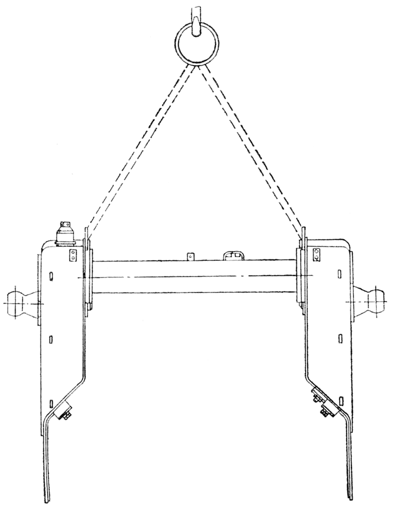 Присоедините гидробаки стропами к подъемнику ( рис. 317 ). Отверните шестнадцать болтов крепления гидробаков к лонжеронам. Приподнимите гидробаки и, выводя перепускную трубу из лонжеронов, снимите их.