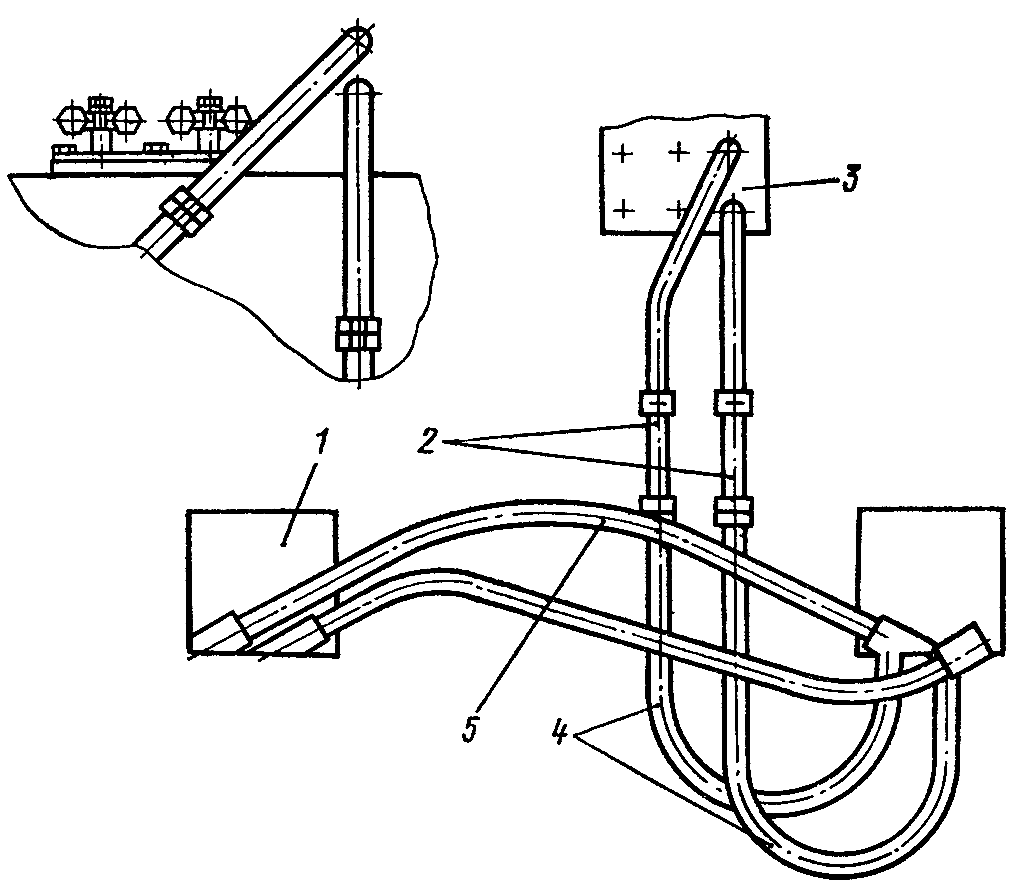 Рис. 334. Схема соединения рукавов высокого давления