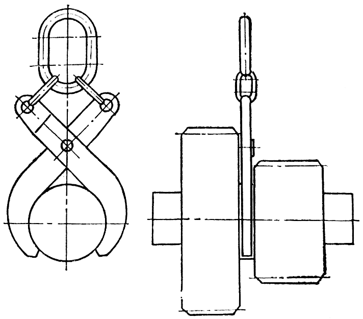 Присоедините к подъемнику захватом ( рис. 259 ) двойную шестерню 11 ( см. рис. 256 ) и снимите ее вместе с внутренними кольцами роликоподшипников 12 и 20. Масса шестерни 40 кг.